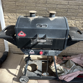 Craftsman self-propelled snow blower – great shape/like new, 28” clearing width, electric start, 11.50 horse power, Briggs & Stratton 1150 series; Holland Grill; Toro gas powered leaf blower; Worx electric leaf blower; Garden hose reel cart w/hose; (4) Matching swivel patio chairs; (2) Matching swivel patio chairs w/ cushions; Round glass top patio table; Fertilizer spreader – like new; Aluminum step stool, Aluminum ladder; Miscellaneous garden tools & yard figurines